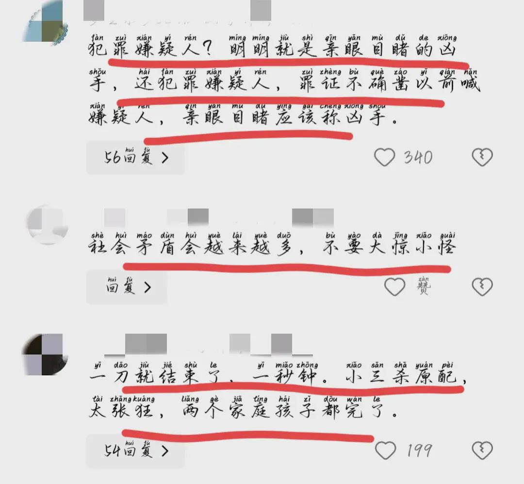 网友一表示:犯罪嫌疑人?明明就是亲眼目睹的凶手,还犯罪嫌疑人,罪证不确凿以前喊嫌疑人,亲眼目睹亲自出手该称凶手吧!