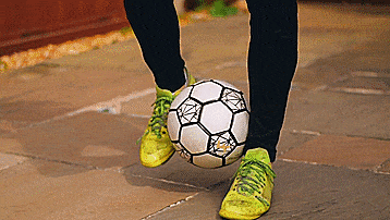 第四步:让球弹起来,把脚放到球上,用脚底向下击球