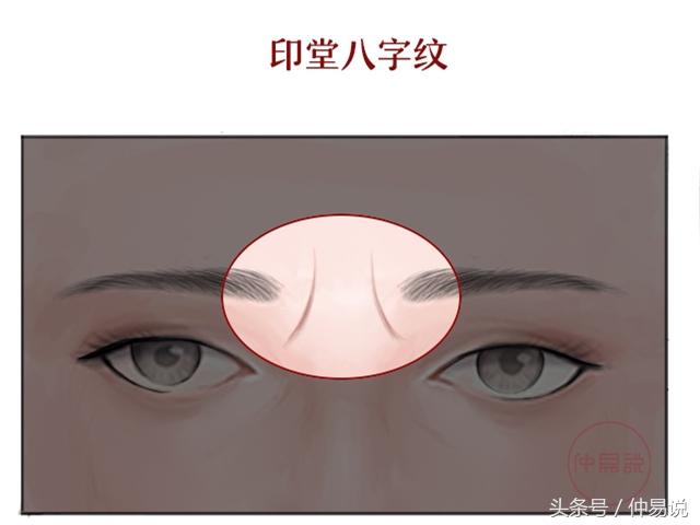 顾名思义,八字纹就是印堂部位形似“八”字的纹路。