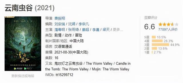 到了《云南虫谷》,深度怀疑是编剧换了人,全剧不如人意的地方太多了。总体来说,与《龙岭迷窟》比较,差了十个《精绝古城》的距离。