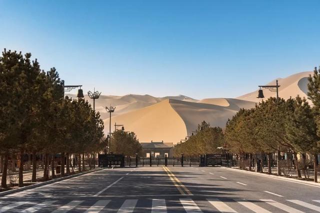 鸣沙山在敦煌市内就可清晰看到。“沙岭晴鸣”是敦煌八景之一。《中国国家地理》杂志“选美中国”评选的前3名沙漠都是巨型沙漠的腹地,作为第4名的鸣沙山更适合感受沙漠共通的气质。图/视觉中国