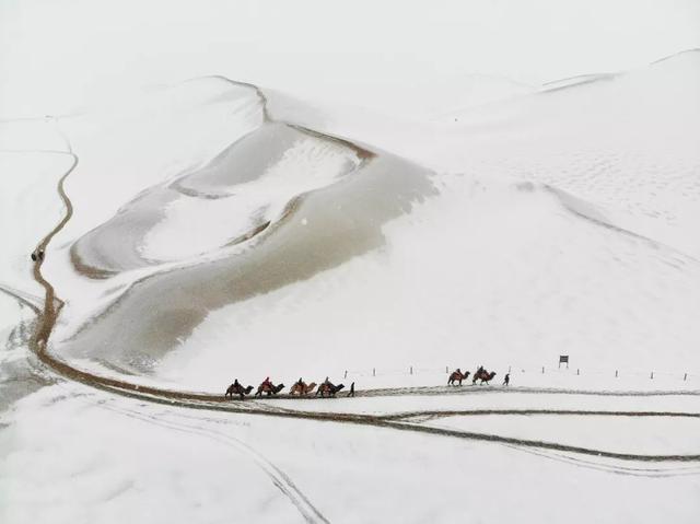 不多见的纯白“雪漠”。雪一般因为量少及风的作用,很难完全覆盖沙漠,常只有斑驳的景象。图/视觉中国