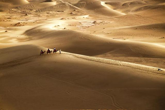 驼队一般会走迎风面和沙脊,它们被风压实,相对好走,背风面沙粒堆积比较松散。图/视觉中国