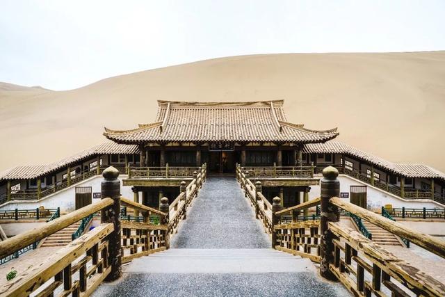 丝路余韵鸣沙山,东麓正有着敦煌最负盛名的莫高窟;西麓是同样有名的西千佛洞;山南有“一个庙石窟”和“五个庙石窟”;而山北的月牙泉镇,静坐着移建的西晋古雷音寺,是现在敦煌市内规模最大的佛教活动场所(石窟都被保护起来),尤为鲜活。