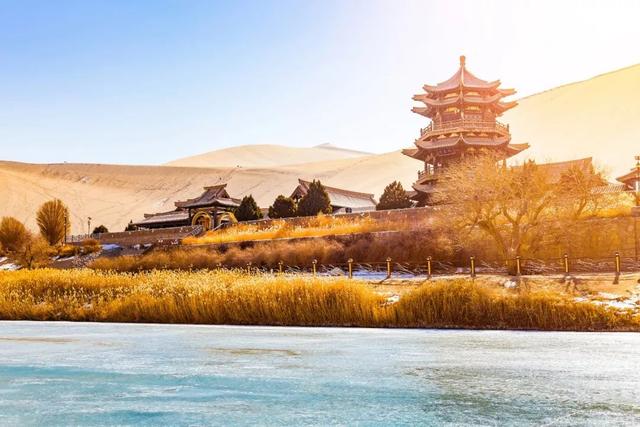 历史张开双臂。图为月牙泉边的听雷轩。图/视觉中国