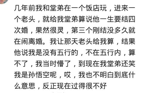 网友:以前找过一个先生算的很准,然后因为算的都是很久以后的事渐渐没联系删掉了,后面应验后再也找不到了,就是命吧