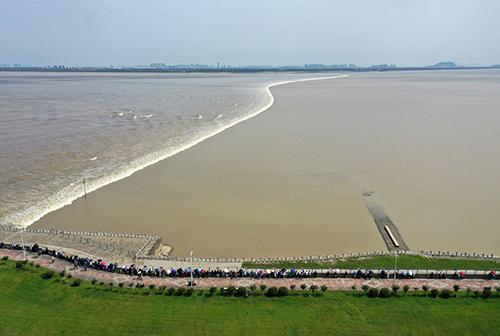 这其中农历八月十八和七月十八,是地球、太阳、月亮几乎在一条直线的时候,这时候太阳对浪潮的影响明显增大,每年这个时候也就迎来两次最强的秋潮。一般在农历七月十六、十七、十八这三天出现,潮头的高度达1.2米,观赏等级为四级,其中等级由低到高分为一至五级。