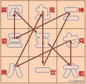 后天数字歌诀:一数坎兮二数坤,三震四巽数中分,五寄中宫六乾是,七兑八艮九离门。